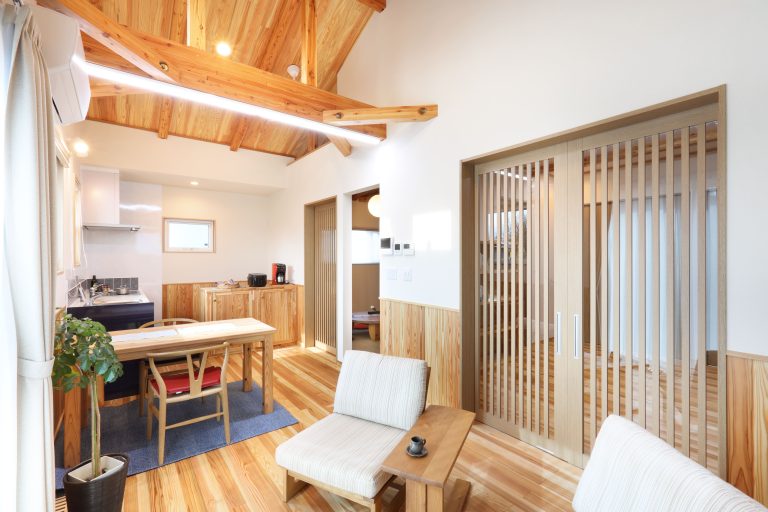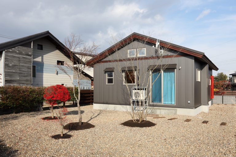大農家の敷地に、大きな家が建っていました。 何代にも渡って住み続けられた家を建て替えして、コンパクトにする。 「屋根は無落雪で、冷暖房は気流を感じないように、お庭の眺められるLDKを、オール電化で省エネ・電気代が掛からない家」が希望でした。平屋で健康的に、省エネ低燃費で暮らせる家が完成しました。