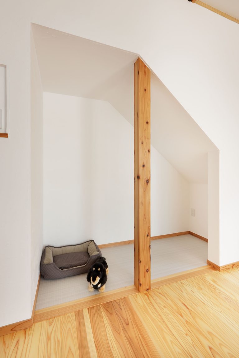家に帰ると、家族全員を迎えてくれる愛犬のハクくんのためのお家。
