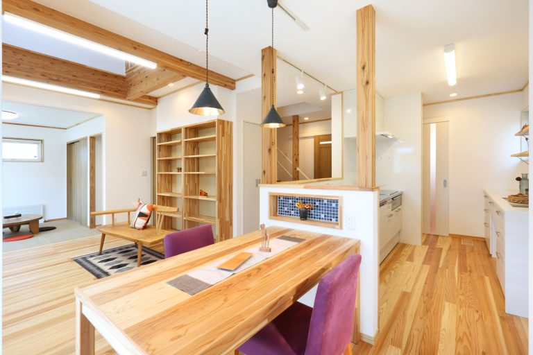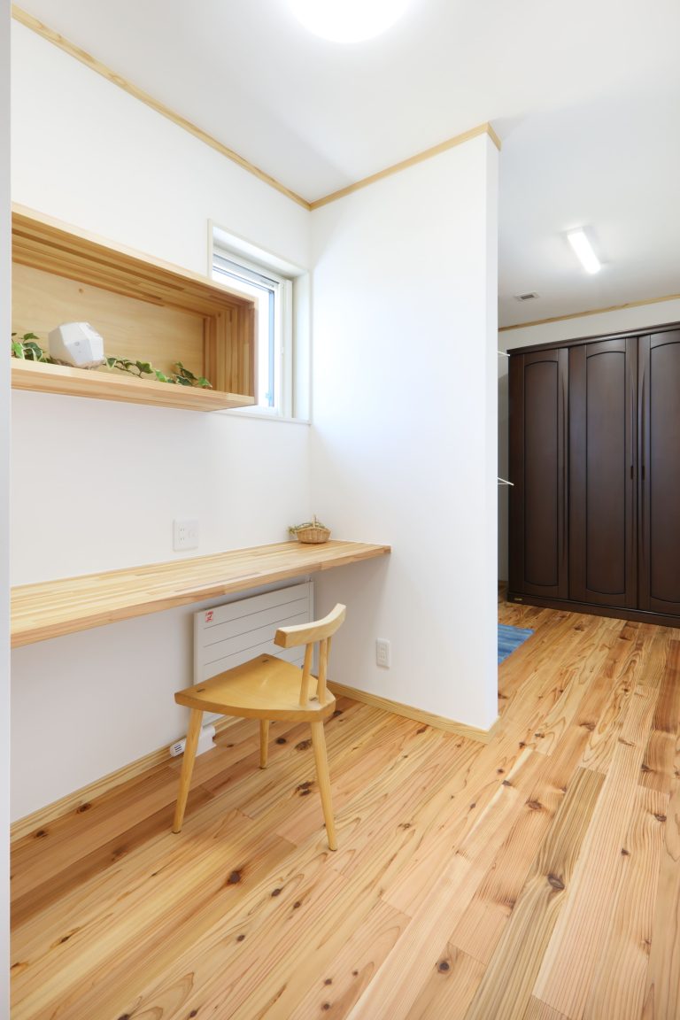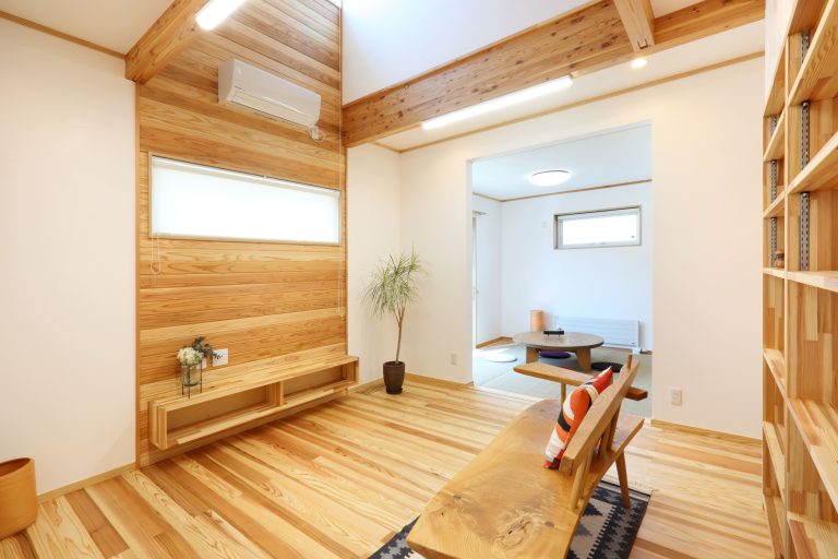新しい家に求めた「いつも新鮮な空気環境の中で心地よく暮らせる住まい」をあおもり県産材をはじめとした自然素材+高気密高断熱で叶えました。