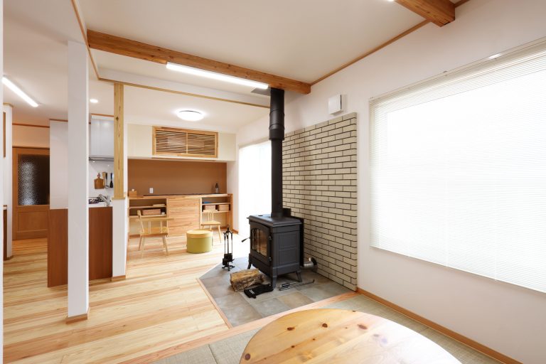 専業りんご農家のご家族が、築75年以上の住宅を建て替えして新生活をスタート。 お施主様は、30年以上勤めた信州長野から脱サラして、専業農家を継ぐために帰省。 子どもたちにも田舎でしか味わえない環境を体験して欲しくて、Uターンを決意しました。 家族それぞれが心地いい場所を作り、みんなが集まるLDKは、四季折々の景色を眺められてゆったりと寛げる空間になりました。子どもたちの秘密基地はロフトに。暖房はもちろん、リンゴの木を燃料にする薪ストーブです。